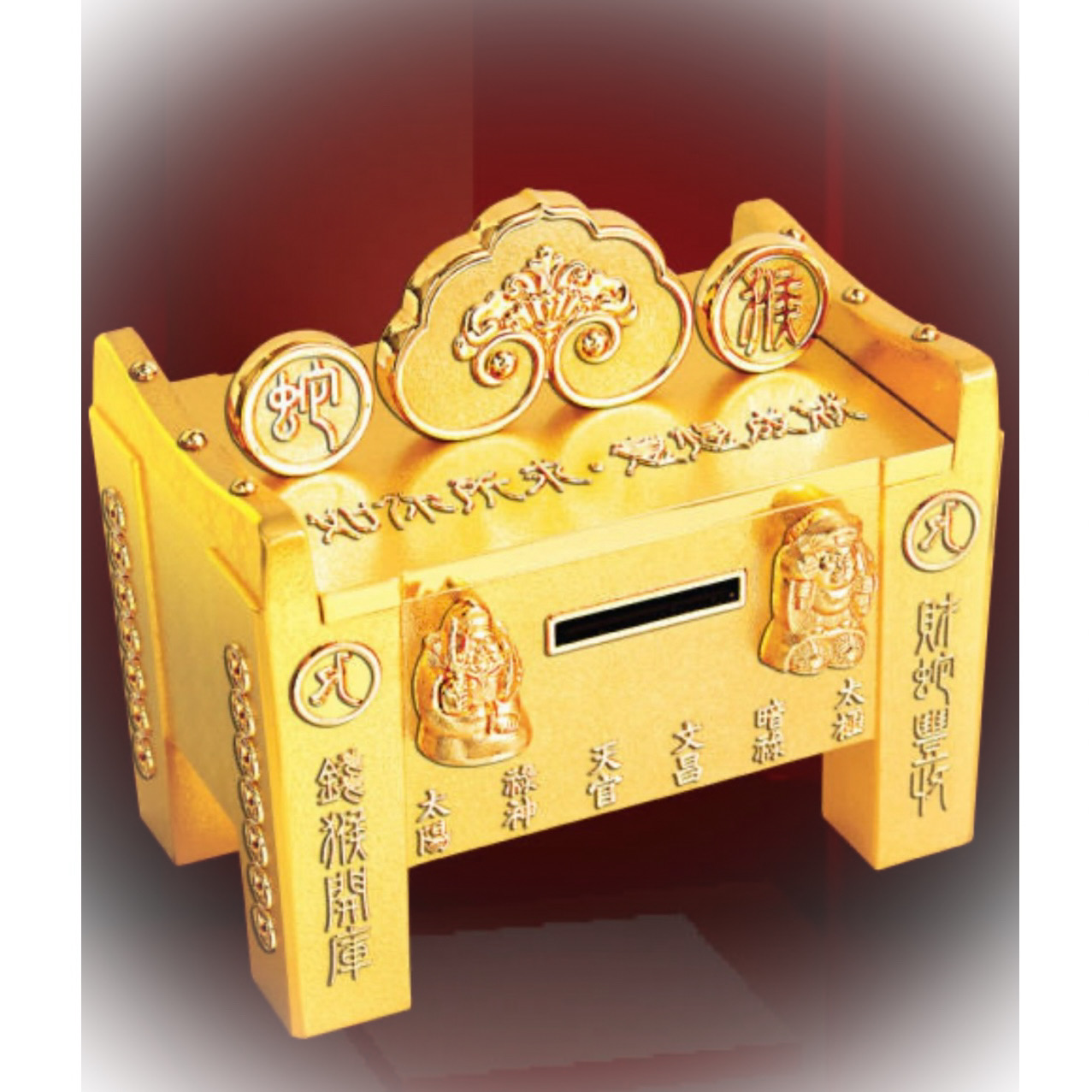 今年的大財箱是古財鼎造型。在下元八運中,鼎通常是三腳,但是現在要「四腳」了!原因是今年已進入九運鼎卦第五爻「執鼎耳」,代表要執起兩隻鼎耳,把鼎進行搬動,造成目今的世運都不穩定。所以我們就要用 「四腳鼎」來做我們的六合財箱,四平八穩,保住運勢和財運都穩如泰山 。內有「富貴天子虚空藏」菩薩梵文種子字加持人人開啟智慧,福智雙全。