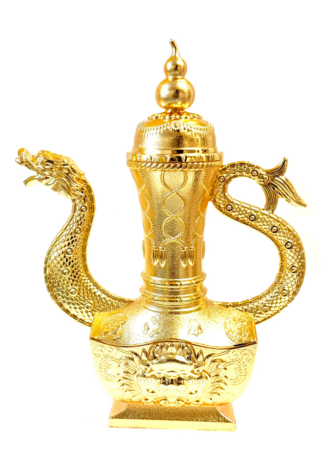 古代以藥壺、葫蘆為化病聖物,內藏大醫王醫治世間所有疾病的靈丹妙藥!金龍身軀成S形是宇宙吉祥符號,曲折有情,象徵陰陽和合,五大調和。