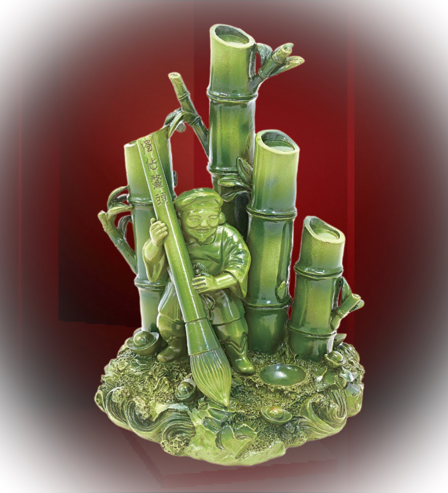 今年四綠文昌貴人星飛臨東北方,家家戶戶在大廳或房間東北方放一座「財神文昌筆」,非常奪目。這是大黑天財神拿著一枝很大的筆,與身後的「四枝富貴竹」融合在一起, 便成為加料「財神文昌筆」,既可以為我們招財,又可以得到文昌運,堪稱中國風水物品中的極品。